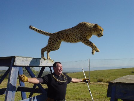 Jules with Jumping Cheetah, Duma, South Africa 2003